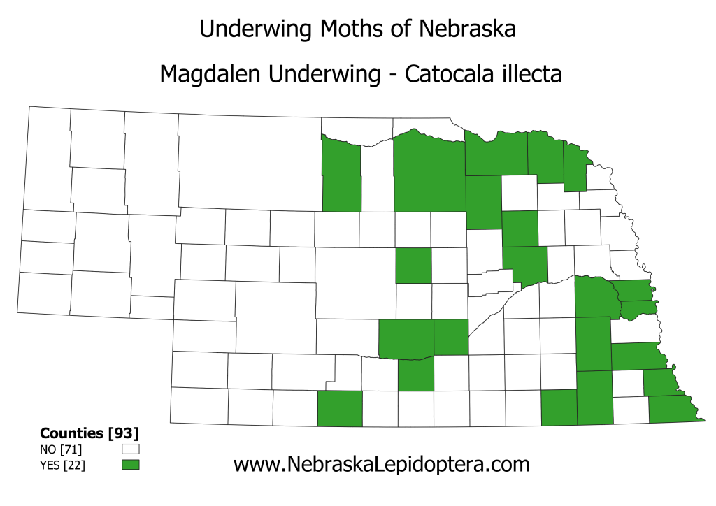 Similar Species: Ciinton’s Underwing (C. clintoni) is smaller and has prominent FW basal dashes.