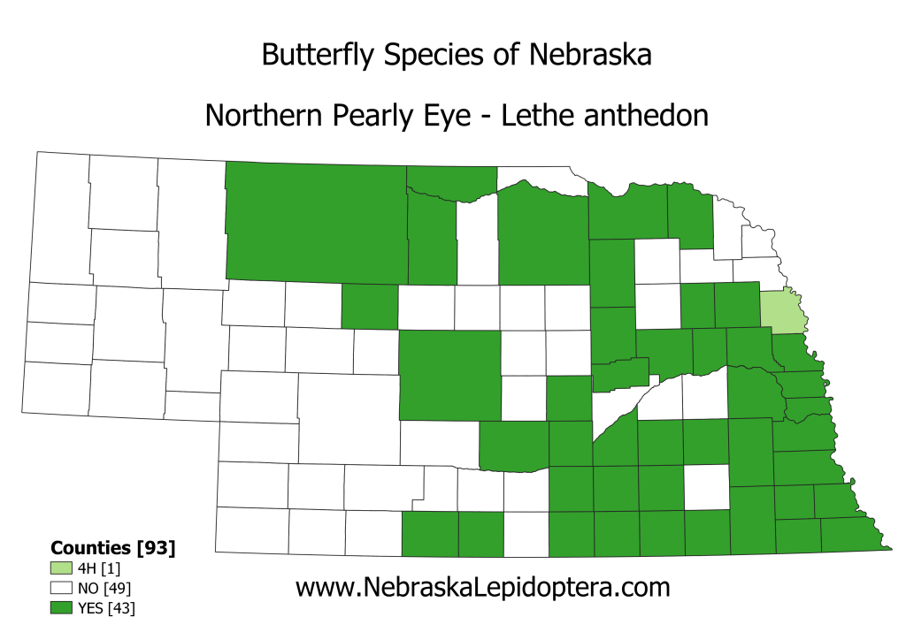Larval Hostplant(s): Various grasses including Bottlebrush (Hystrix patula) which is present in wooded areas of Fontenelle Forest.