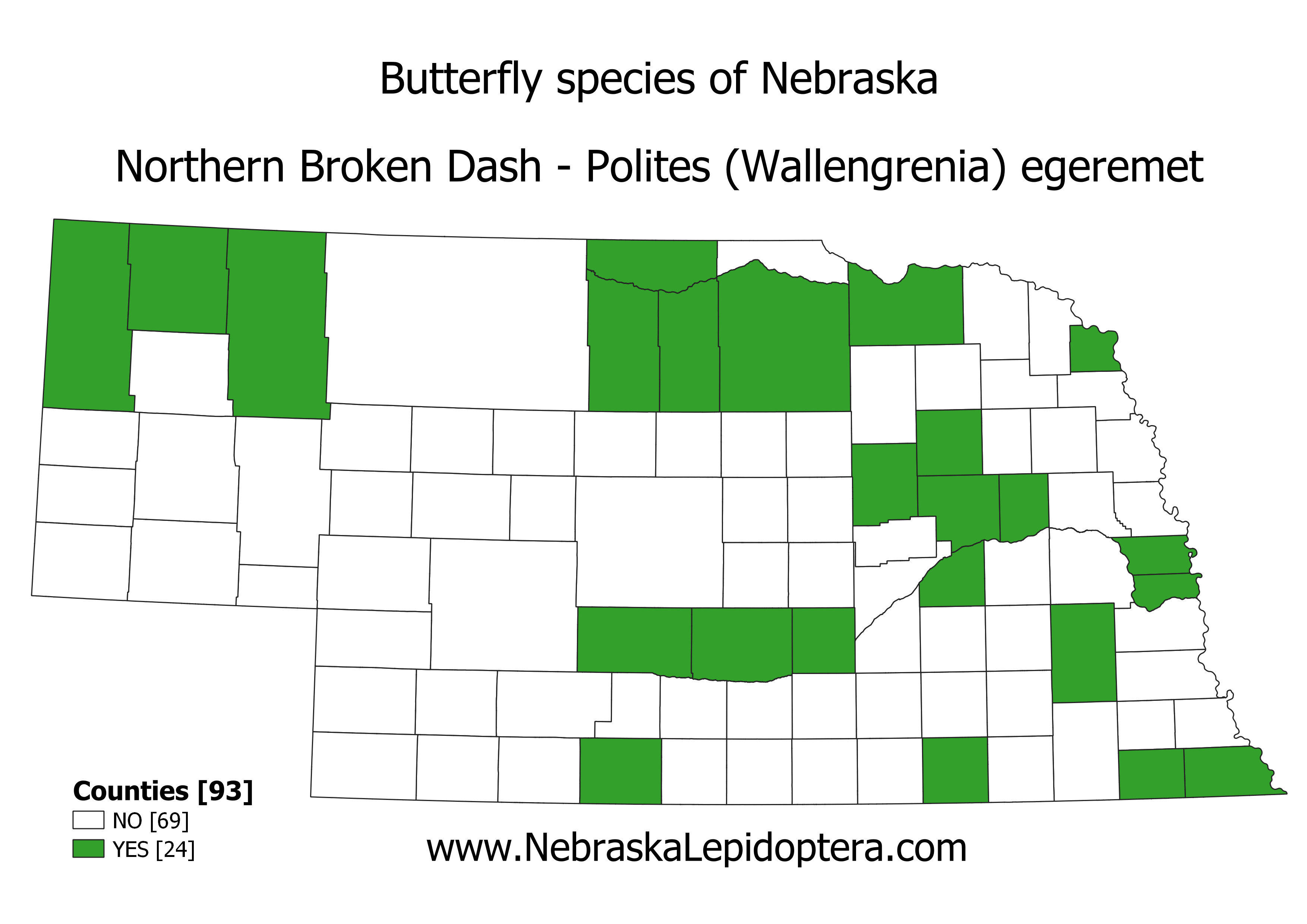Range: The Northern Broken-Dash is found from the eastern Dakotas and eastern Texas to the east coast. In Nebraska it is found in the southeastern half of the state with additional records from along the Niobrara River and the Pine Ridge.