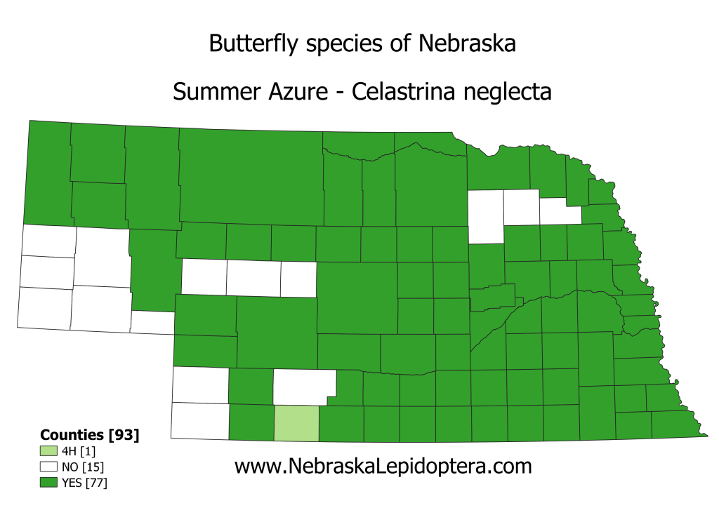 Notes: This Butterfly is quite variable in appearance across the state and the country. The genus Celastrina is under constant revision with species, subspecies and “forms” continuously being shuffled about.